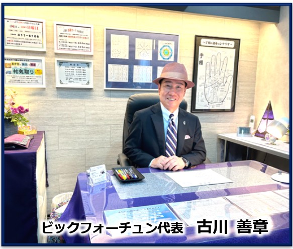 縁あって師範鑑定士・古川善章氏へ弟子入り。手相、九星気学、姓名判断を基礎から学び直し、タロット占いもブラスした複数の占術による鑑定を行う。