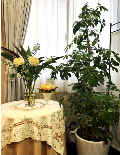 ・観葉植物に囲まれ、濃紺の絨毯とオフホワイトの壁、紫を基調とした落ち着いた店内は、お客さまのプライバシーを完全に守り、心やすらぐ快適な癒し空間となっております。