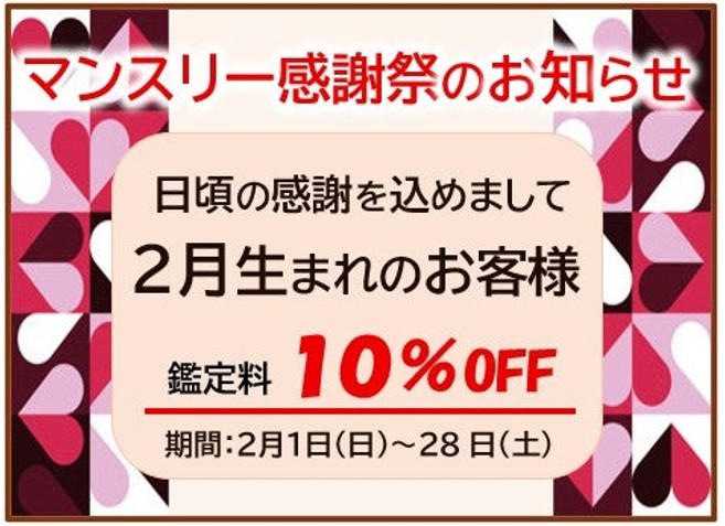 ◆鑑定時間60分コース・90分コースのお客様におかれましては、駐車料金の半額500円をキャッシュ